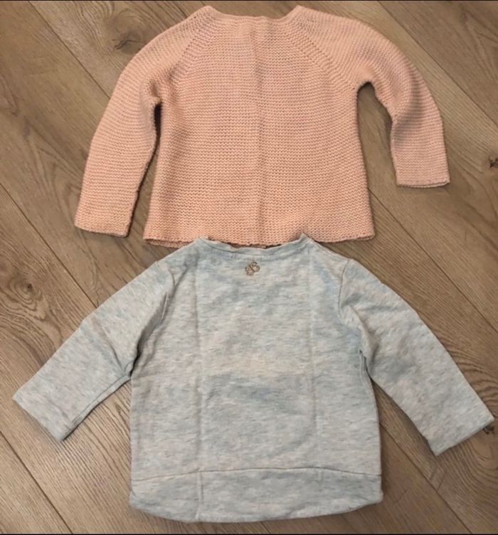 très bon état. comme neuf aucune tache, aucun accroc taille 18/24 mois 92 cm prix d’achat 17€ chaque pull
