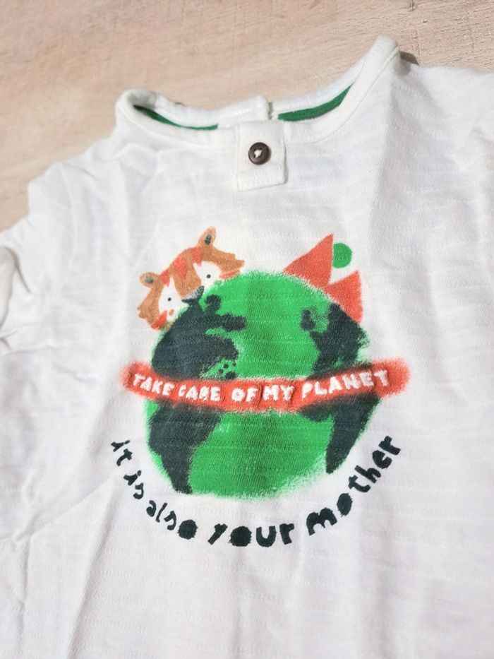 Ensemble pantalon classe blanc à rayures et t-shirt sauvons la planète. Taille 6 mois 63-69 cm Marque kiabi #lili7606taille6mois #lili7606ensemble #lili7606kiabi #ensembleblanc6mois #ensembleplanete #ensemblekiabi6mois #ensemblegarçon6mois