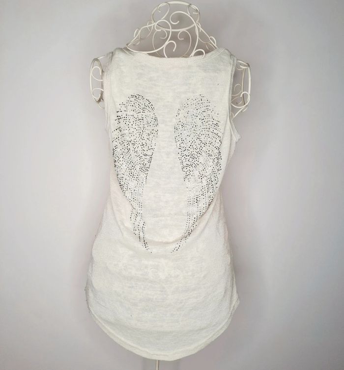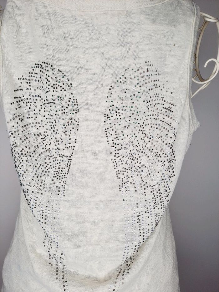 T-shirt long ailes avec strass manques certain strass Taille M / aisselles à aisselles 40 cm / longueur 63 cm #lili7606tailleM #lili7606tshirt #tshirtailesdange #tshirtfemme #tshirtsansmanchesfemme #tshirtavecdesailes
