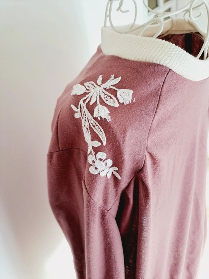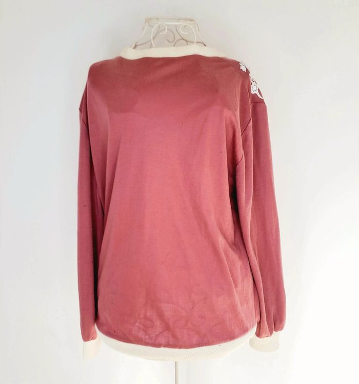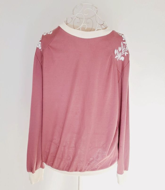Pull rose avec des fleurs brodé. Petit endroit où ça se décou visible sur photo Taille L #lili7606tailleL #lili7606pull #pullbroderie #pullbrodévintage #pullrosepoudre #pullchaudfemme #pullvintagefemme