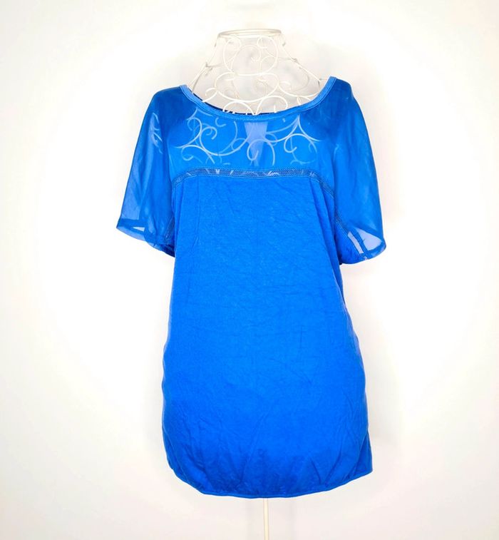 Blouse bleu électrique. Bustier transparent. Taille XL #lili7606tailleXL #lili7606tshirt #tshirtbustier #blousemanchescourtes #tshirtbleuélectrique #tshirtfemme42 #blousefemme