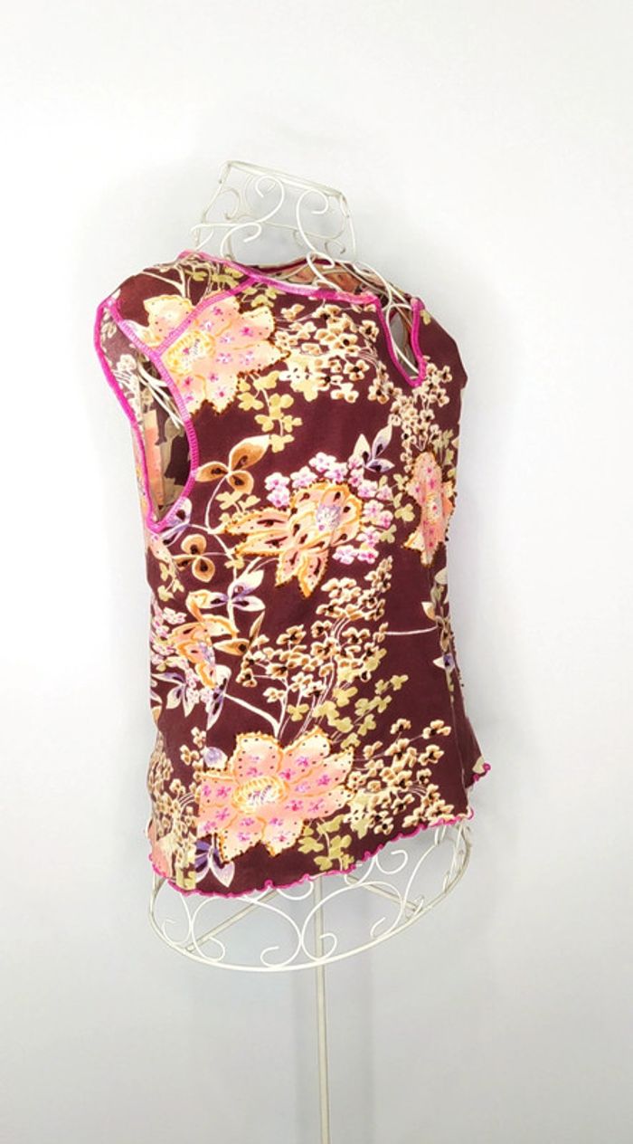 T-shirt marron avec des fleurs et feuilles perlés. Taille L #lili7606tailleL #lili7606tshirt #tshirtfleurivintage #tshirtsansmanchesfemme #tshirtperlefemmel