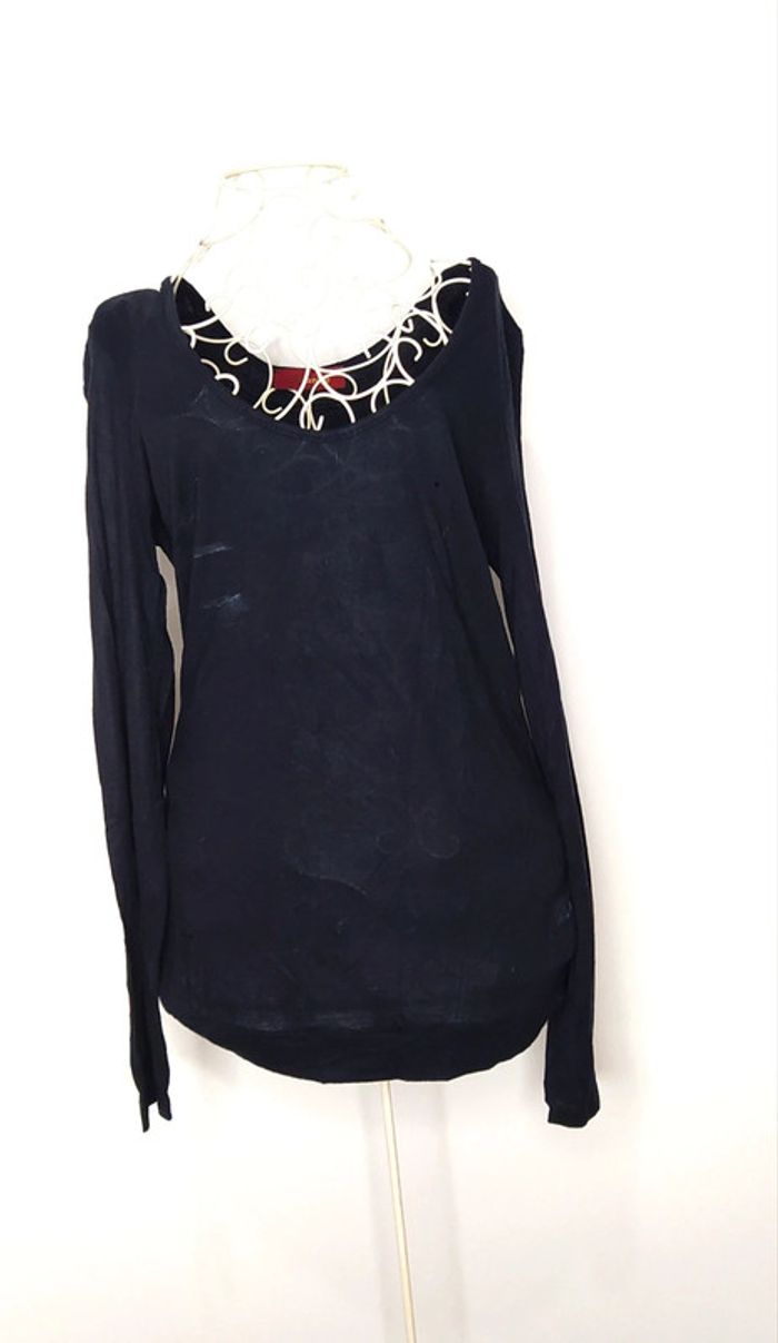 T-shirt noir avec le dos perlé. Taille L Marque an'ge Comporte deux trous visible sur photos . Trace de déodorant. #lili7606tailleL #lili7606tshirt #lili7606ange #tshirtange #tshirtnoirfemme #tshirtperlefemmeL #tshirtmancheslongues #tshirtangeperle