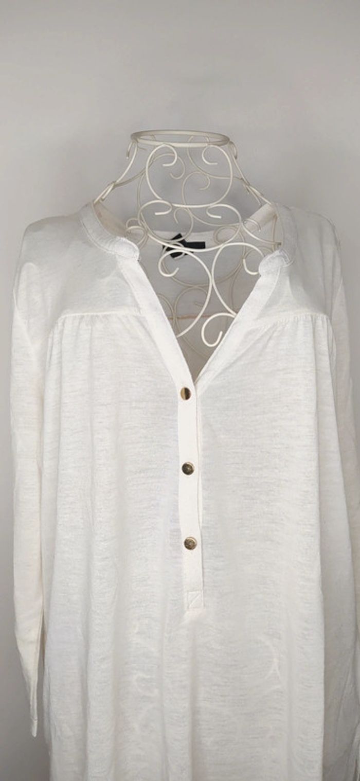 Tshirt long à l'arrière blanc avec boutons au décolleté. Taille S Marque H&M #lili7606tailleS #lili7606tshirt #lili7606hetm #tshirthetmfemme #tshirtblancfemme #tshirtlongfemme36 #tshirthetmtailles #tshirtlongblanc