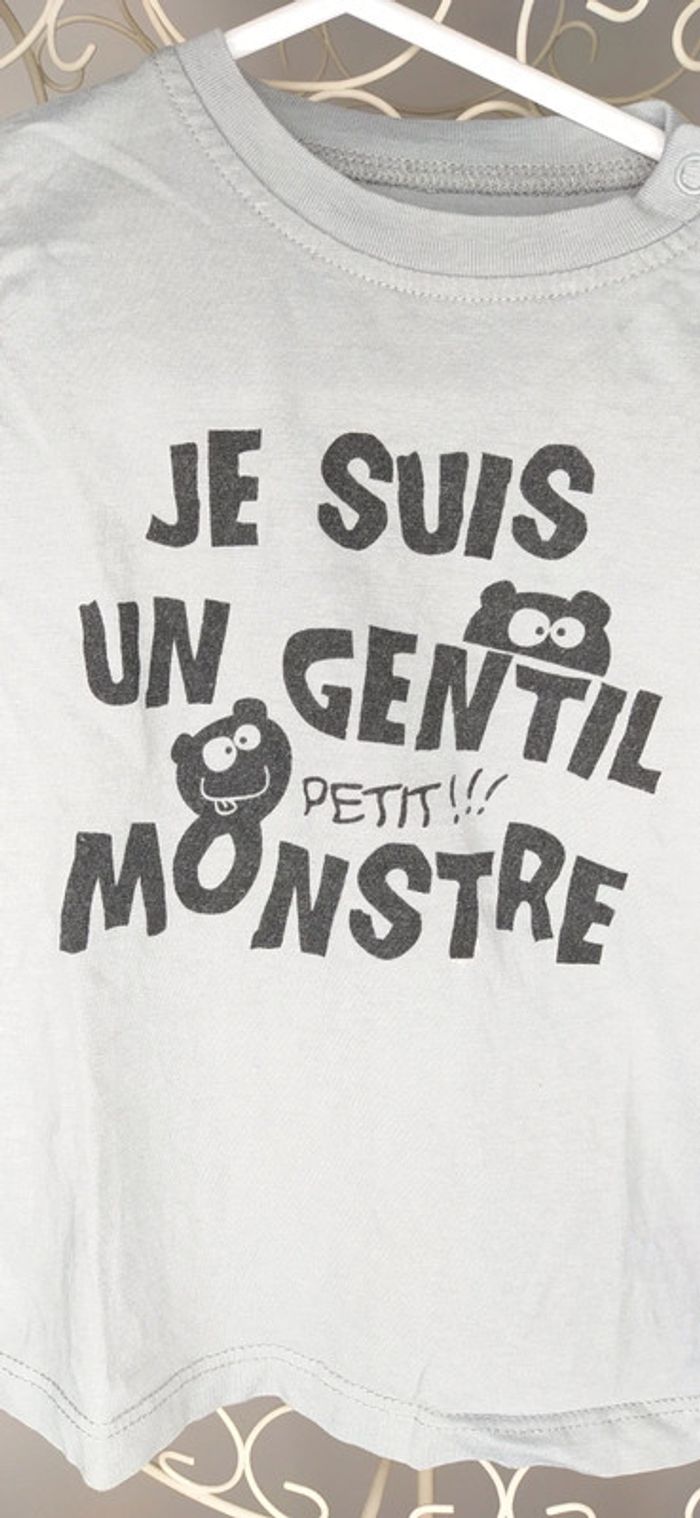 T-shirt gris imprimé je suis un gentil petit monstre. Taille 18 mois Marque kimbaloo #lili7606taille18mois #lili7606tshirt #lili7606kimbaloo #tshirtkimbaloo18mois #tshirt18moisgarçon #tshirtgrisgarcon18mois #tshirtmonstregarcon