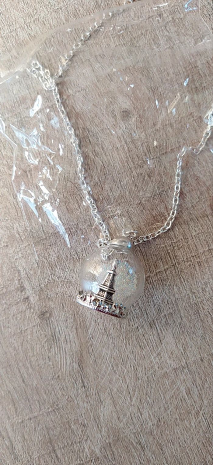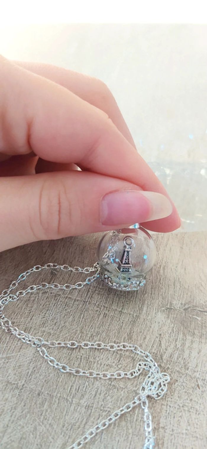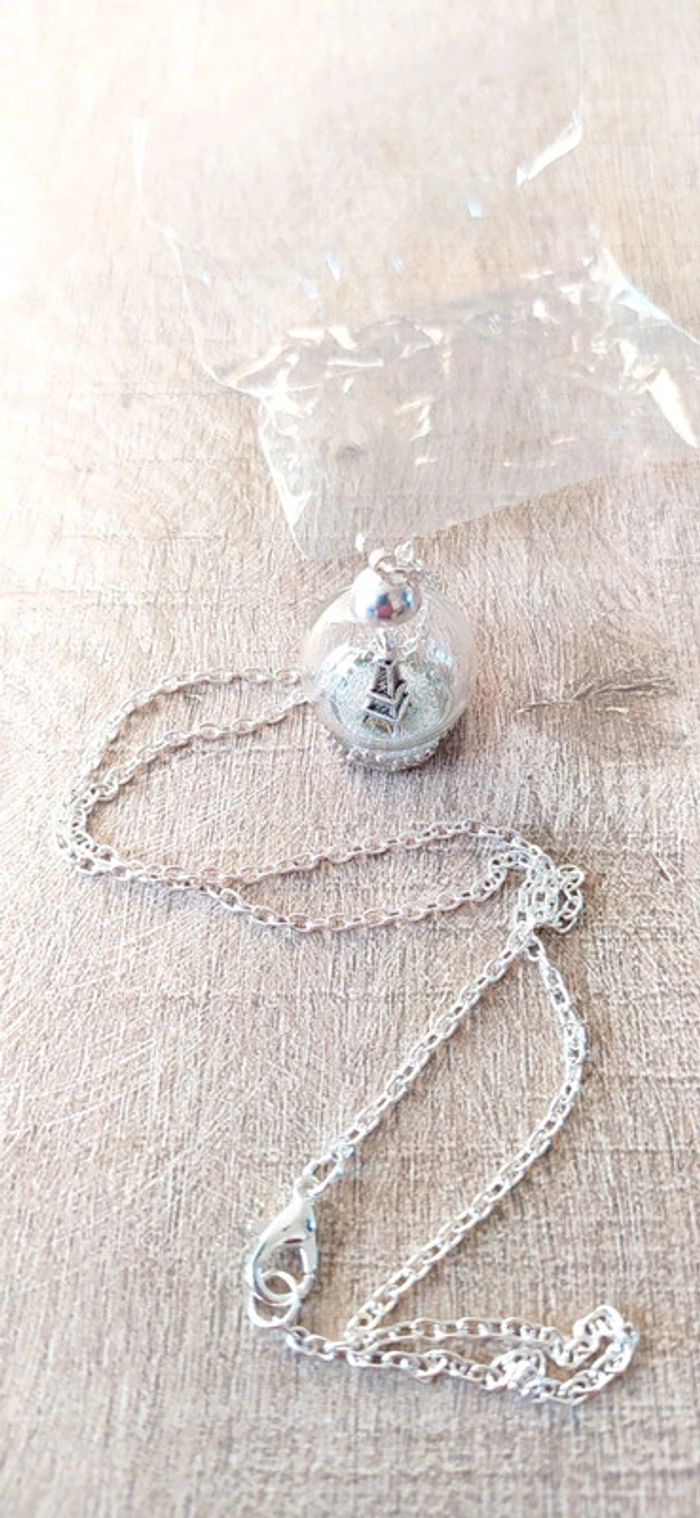 Pendentif en boule avec perle à l'intérieur et tour Eiffel beuf #lili7606amazon #amazon #toureiffelparis #collierfantaisie #collierneuf #colliertoureiffel #collierbouleargente