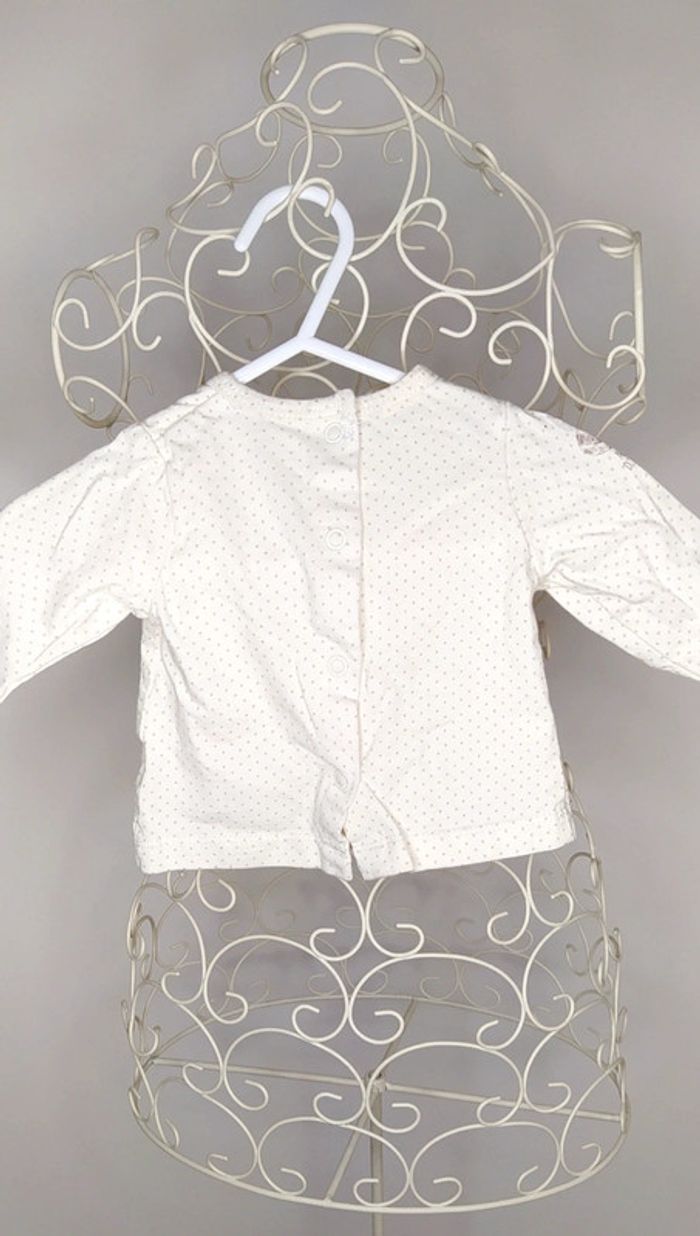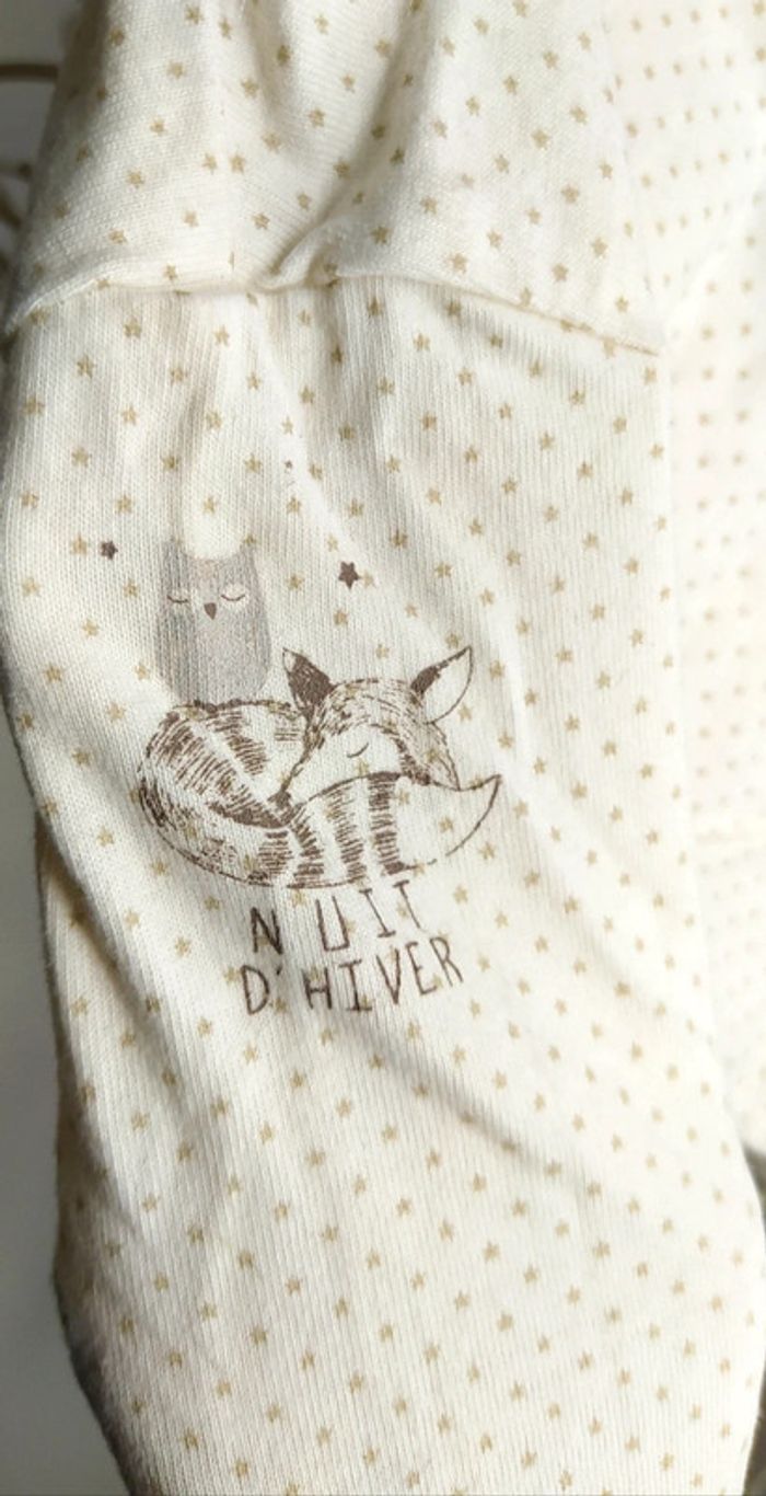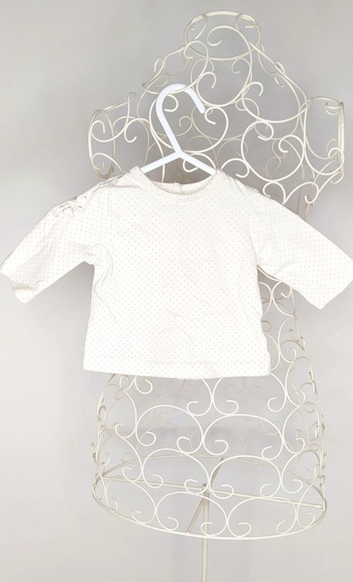 Haut crème avec de petites étoiles. Fermeture à clips à l'arrière Taille 1 mois #lili7606taille1mois #lili7606tshirt #hautdenuit1mois #hautcremebebe #tshirtmancheslongues #tshirtgarcon1mois #garçon1mois