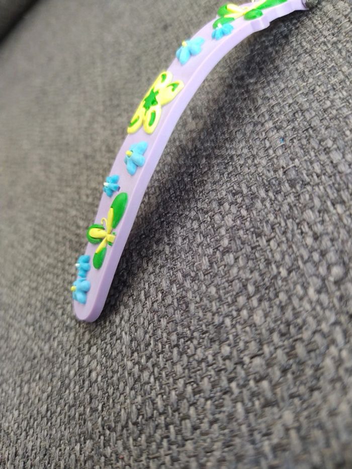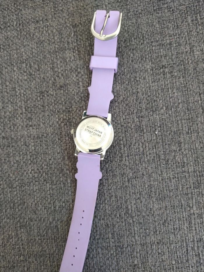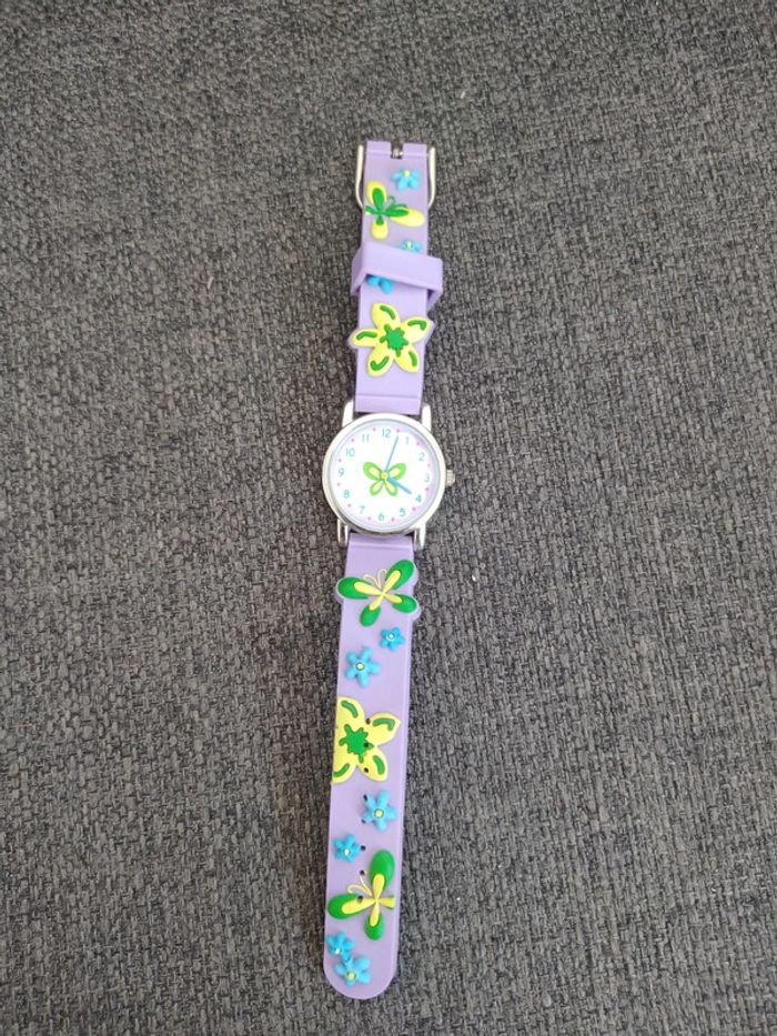 Montre violette jaune, verte et bleu en relief. Je ne sais pas si elle fonctionne encore je n'ai pas changé les piles