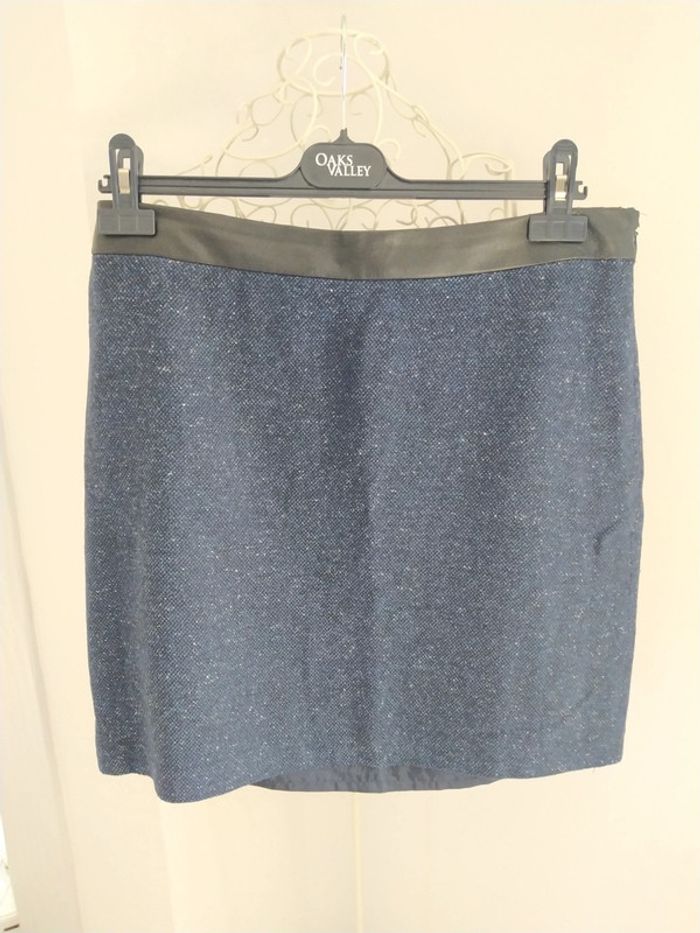 Jupe bleu marine en laine avec doublure. Taille 40 Marque Grain de malice Légèrement abîmé sur la taille visible sur la dernière photo. #lili7606tailleL #lili7606jupe #lili7606graindemalice