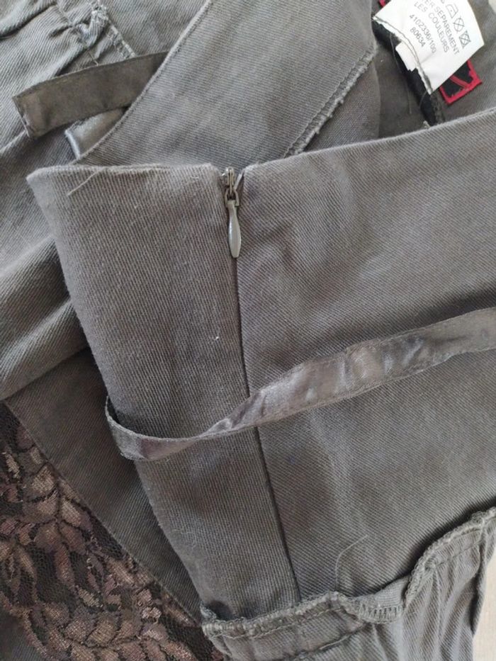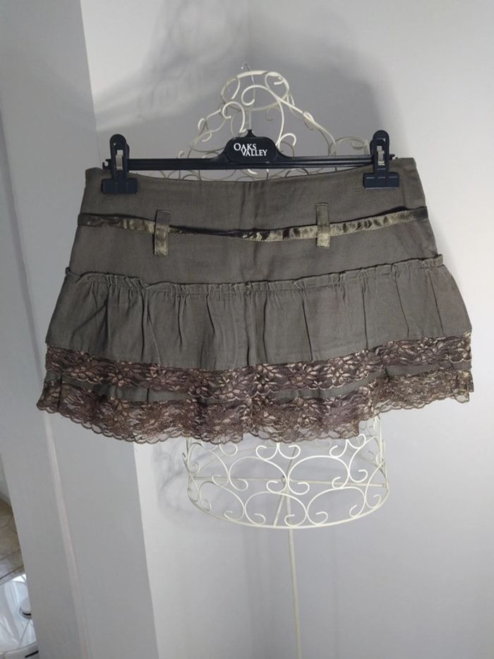 Jupe marron kaki, en parfait état sans défauts comme neuf. Fermeture sur le côté invisible + cordelette effet satin en ceinture. Comporte une doublure. Dentelles dans le bas de la jupe. Taille 40 Marque scintille #lili7606tailleL #lili7606jupe #lili7606scintille