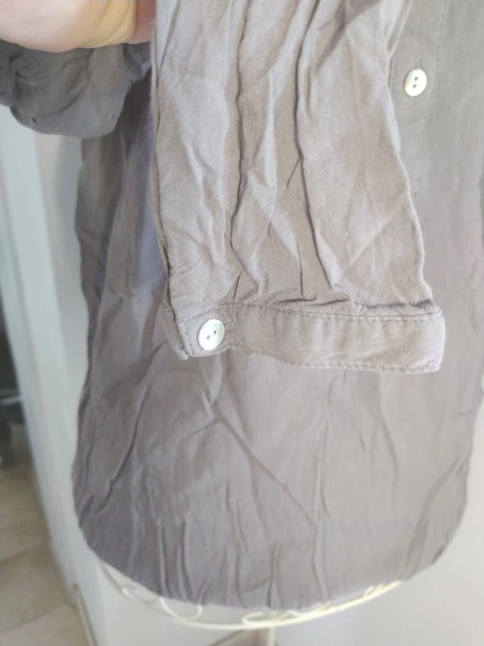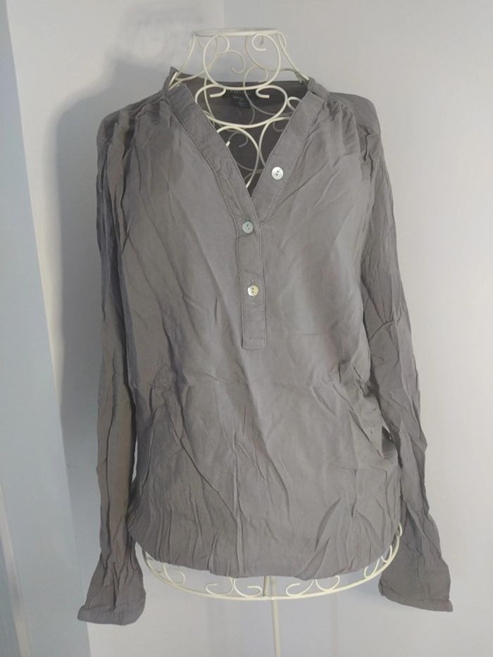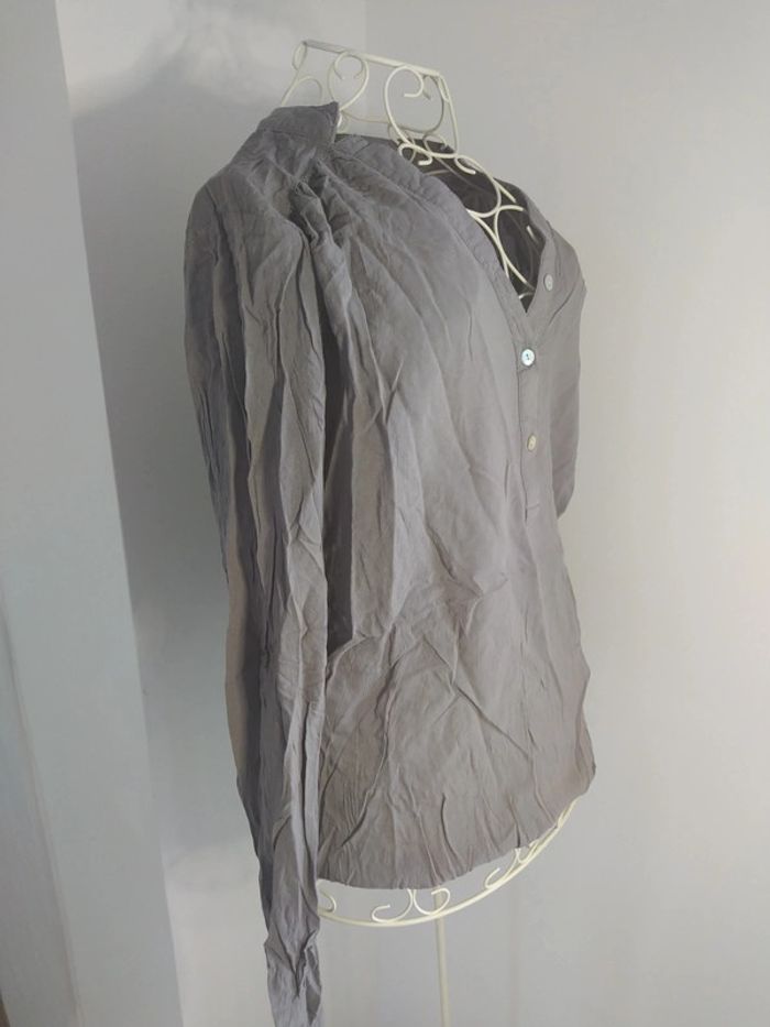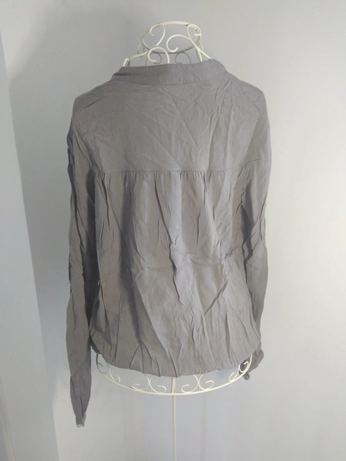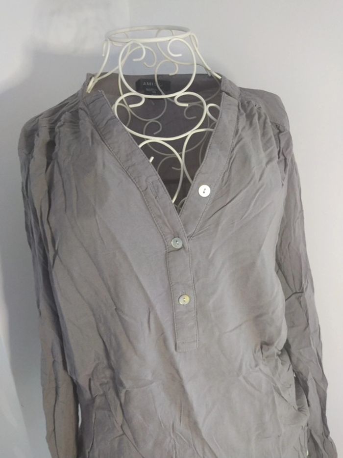 Blouse grise avec bas élastique. Manches retroussables Taille XS Marque Amisu #lili7606tailleXS #lili7606chemise #lili7606tshirt