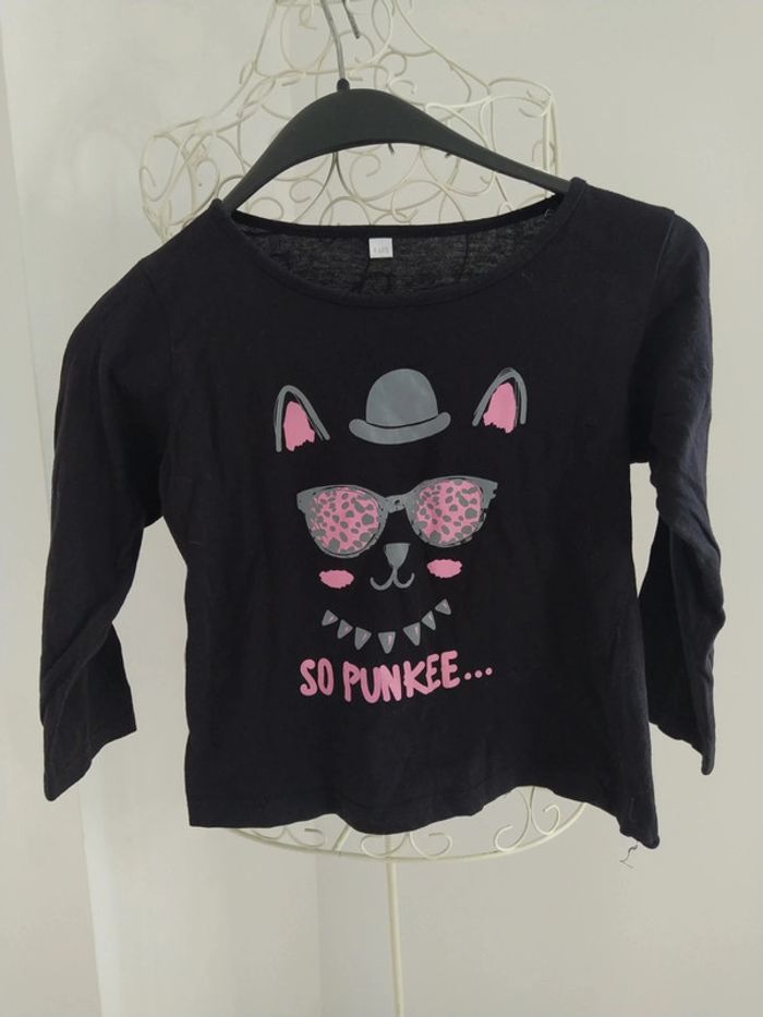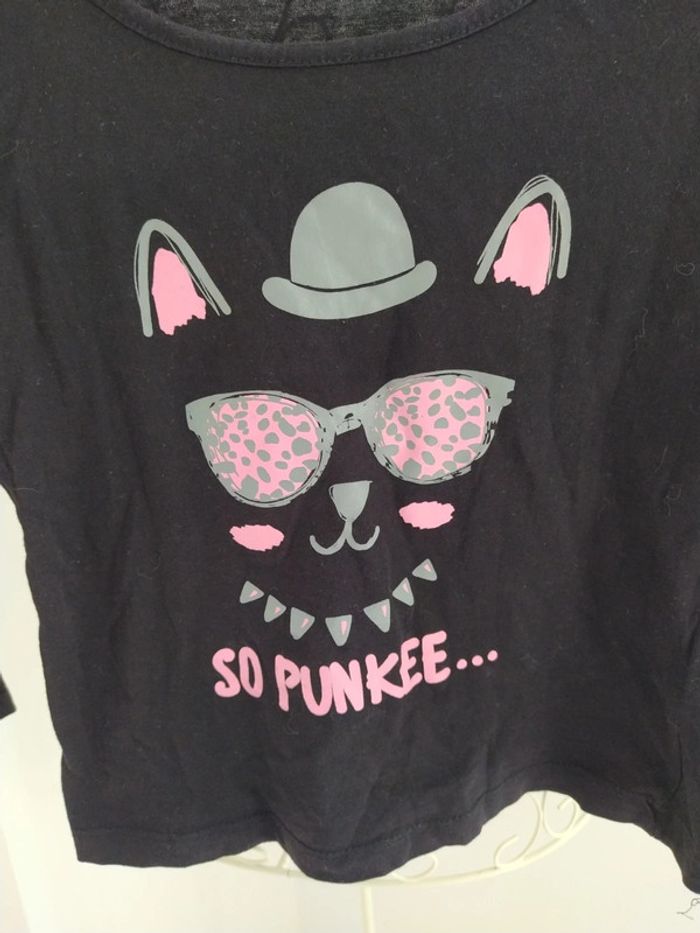 T shirt noir avec chat punkee. Imprimé en parfait état 💯 Coton Taille 6 ans #lili7606taille6ans #lili7606tshirt