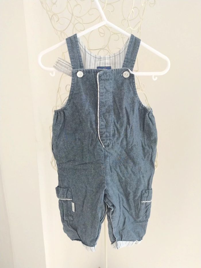 Salopette bleu Jean avec poches. Comporte des clips sur le torse et entre les jambes. Bretelles réglables Marque Sergent major Taille 6 mois #lili7606taille6mois #lili7606ensemble #lili7606sergentmajor