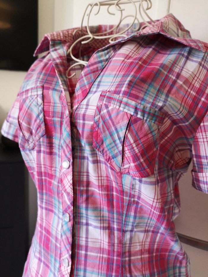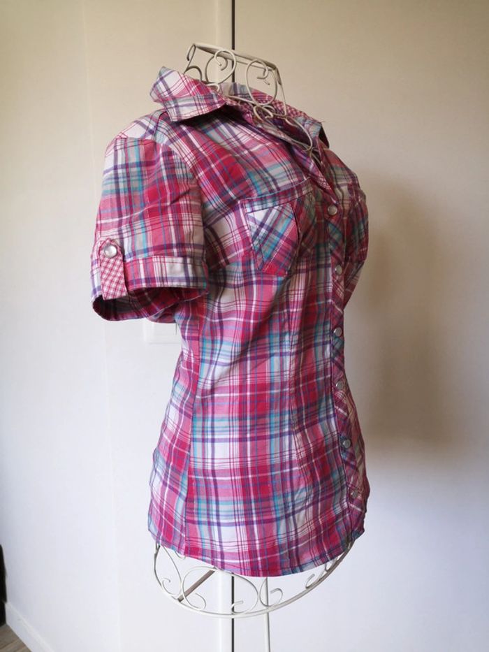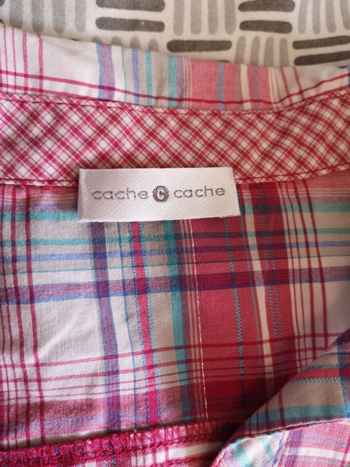 Chemise à carreaux rose Comporte deux poches devant Fermeture en clips Marque cache cache Taille S #lili7606tailleS #lili7606chemise #lili7606cachecache
