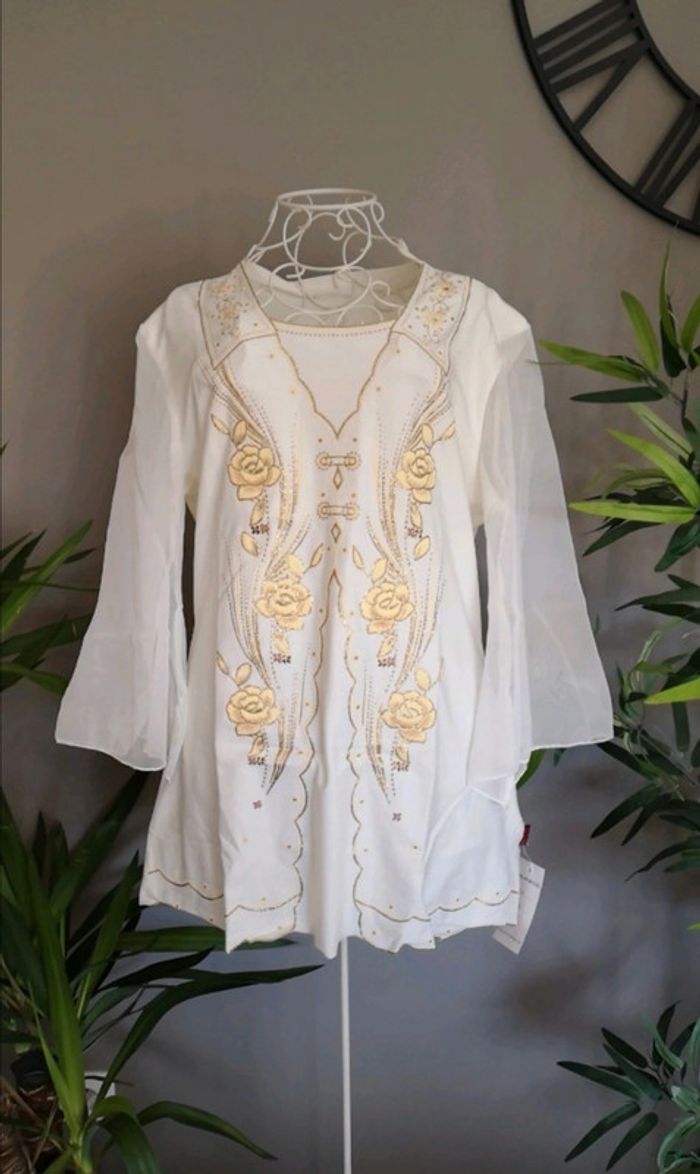 Lot de deux haut M neuf - blanc pailleté or, manches fluide et transparente - rose pailleté or, manches fluide et transparente. Encore dans l emballage Marque Tang an qi yi zu Taille M #lili7606tailleM #lili7606tshirt