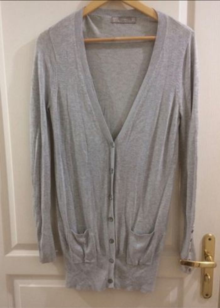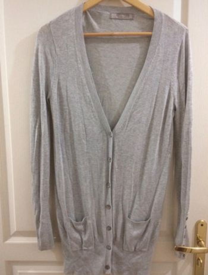 Cárdigan gris, long, taille M, Zara - photo numéro 1