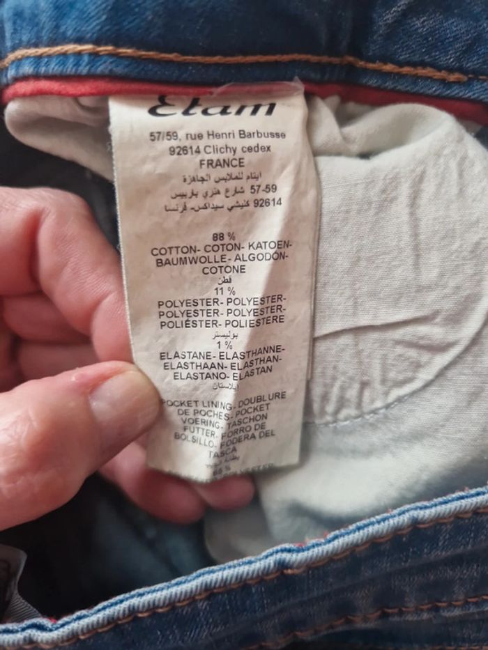 Short en jeans, 3 poches avant, 2 poches arrière, taille 36, de la marque Etam, en très bon état