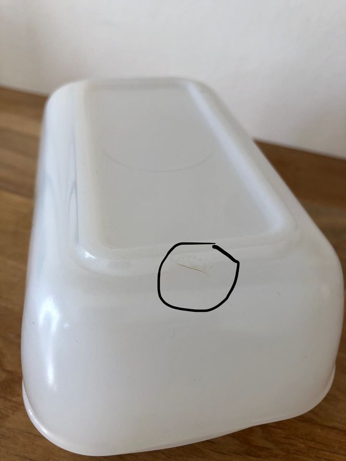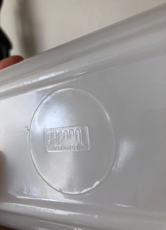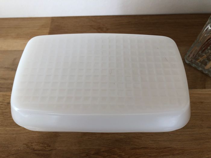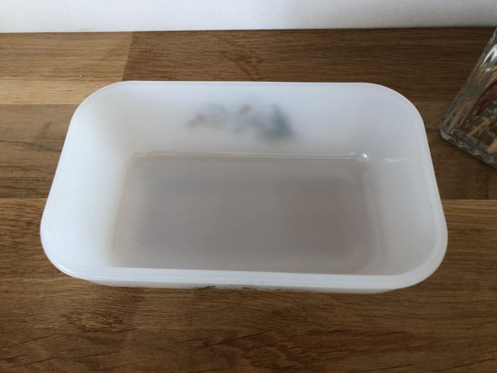 Vintage beurrier de la marque Arcopal Made in France Imprimé marguerites 10 x 16.5 cm environ En bon état global, à noter un éclat sur le couvercle (c'est le même qui est visible sur toutes les photos il fait environ 1cm A noter que le couvercle est légèrement plus foncé (car plus épais) et qu'il n'applique pas totalement sur le beurrier (d'origine, légèrement instable)