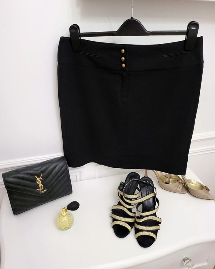 Bonjour à tous je vous propose cette jolie jupe de la marque sinequanone fabriqué en France matière très agréable qui tient bien en place jupe droite un bouton de rechange fausse poche à l'avant n'hésitez pas si vous avez des questions je reste à votre entière disposition en voie rapide et soigné maison non-fumeur et sans animaux