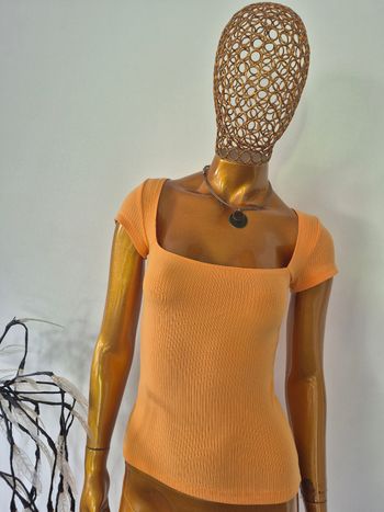 Bonjour à toutes je vous propose pour l'esthétique plus confortable qu'une blouse le t-shirt neuf jamais porté avec de jolis détails organza vert pour appeler les couleurs de la marque en coton très agréable très doux