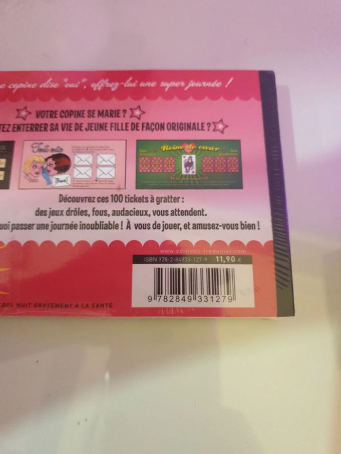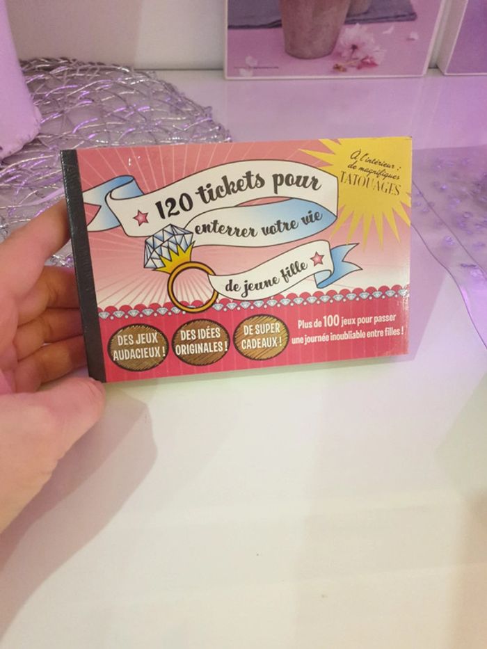 Bonjour je vous propose c'est tu tiens dispensable pour un super enterrement de vie de jeune fille réussi plus de 100 jeux pour passer une journée inoubliable entre filles des jeux audacieux des idées originales de super cadeau J'ai également de serre-tête pour l'enterrement de vie de jeune fille ainsi un bavoir géant pour laisser un message afin que cette journée soit inoubliable n'hésitez pas à me demander les photos bonne journée à toutes Neuf sous blister prix d'achat 11 € 90