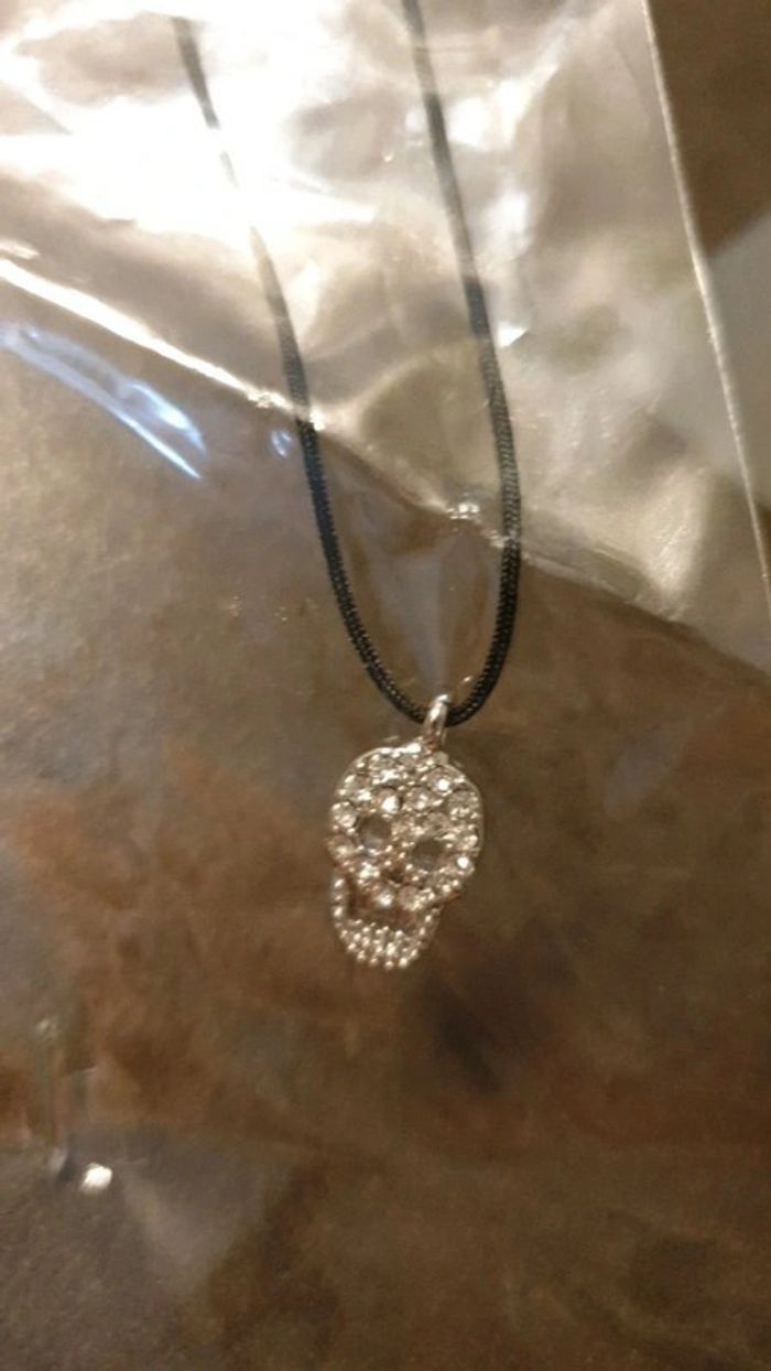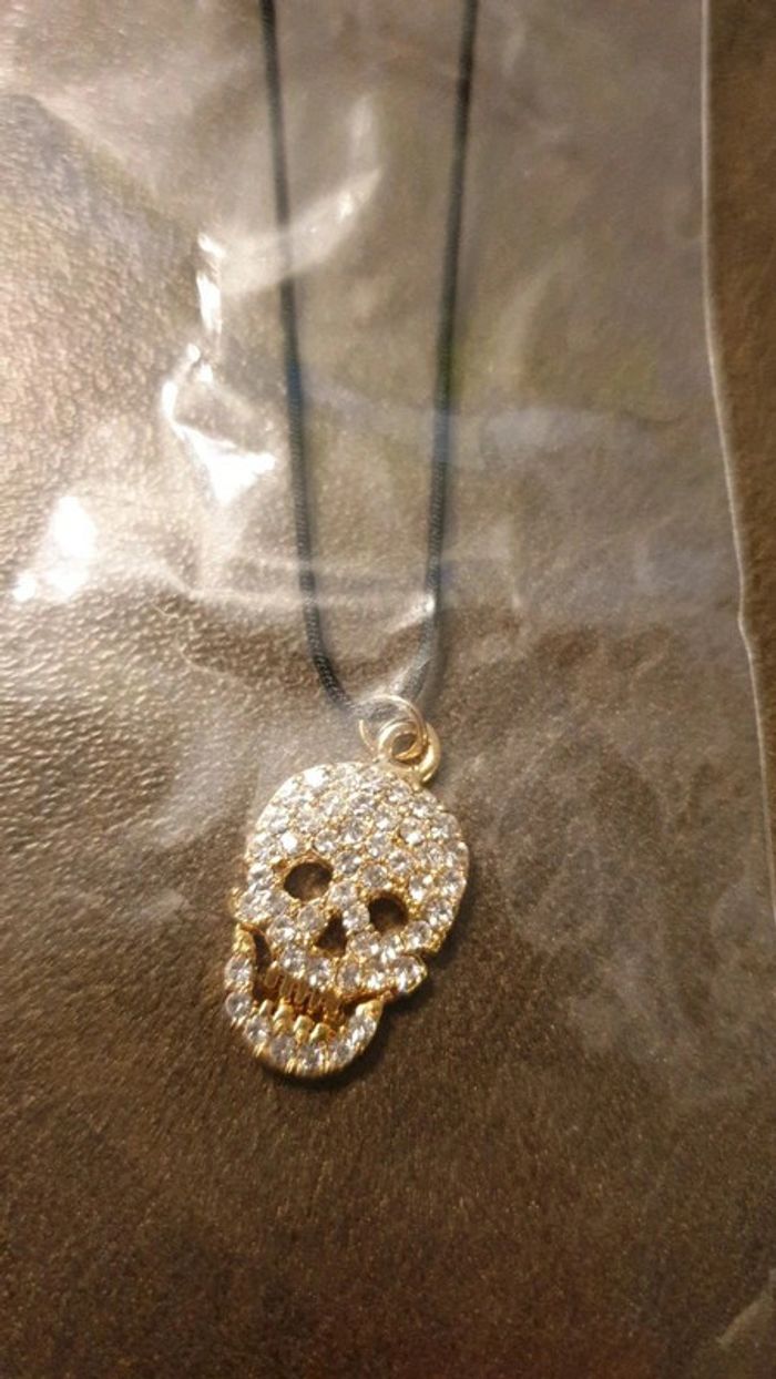 Lot de 2 collier tête de mort doré et argenté en strass - photo numéro 5