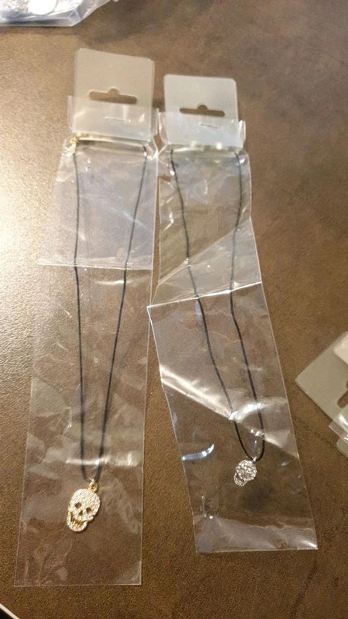 Lot de 2 collier tête de mort doré et argenté en strass - photo numéro 6