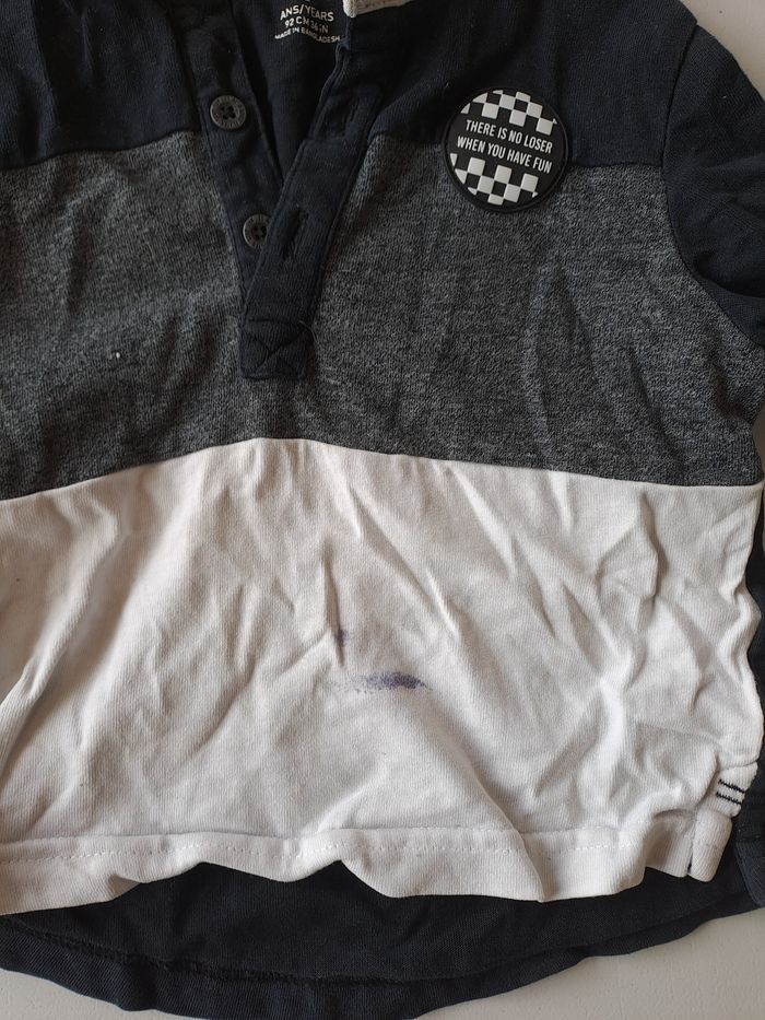 Lot tee-shirt manche longue Le tee-shirt gris et blanc est taché de crayon, voir photo ci joint