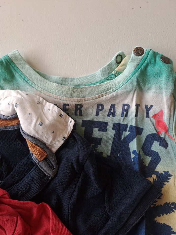Lot tee-shirt manche courte 2 ans Tee-shirt jaune et vert taché au col,voir photo ci joint