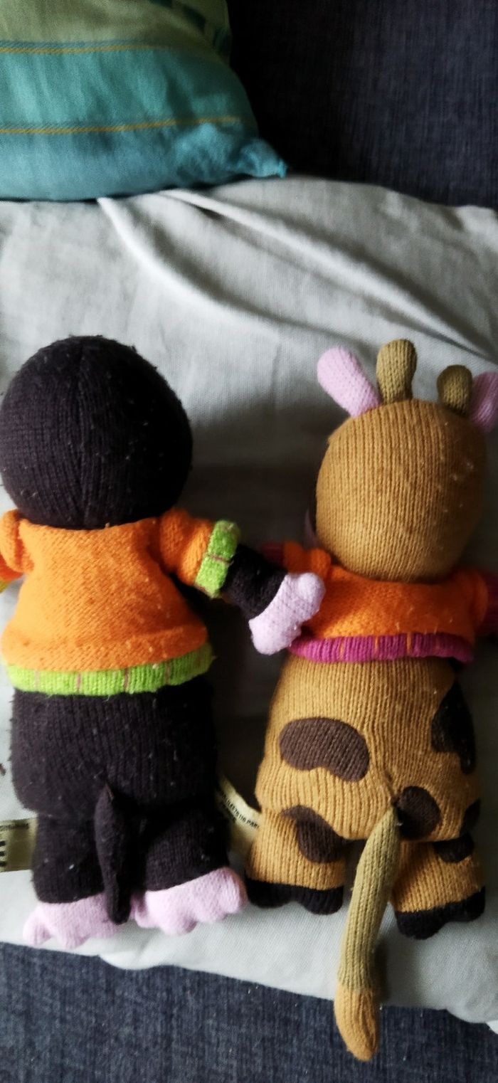 Alice la taupe et Mona la vache 🐄 23 cm En acrylique Quelques bouloches Je peux les vendre séparément 5€