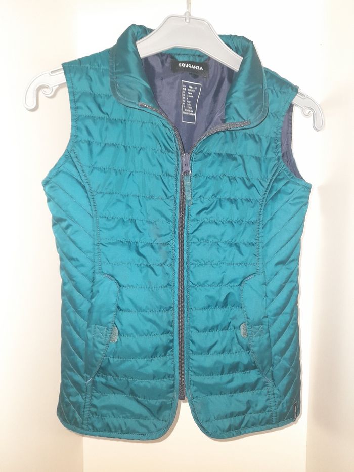 👕 Veste pour garçon 👦 🏷 Taille 125 - 132 cm / 8 ans 📣 De la marque FOUGANZA - DÉCATHLON 🎨 De couleur bleu pétrole 🥁 Très bon état 🪧 Sans manches, léger et près du corps, avec ses 2 poches