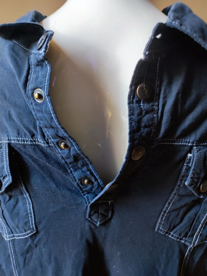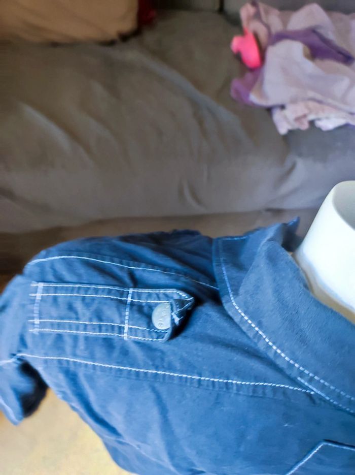 Chemise gre bon état . Pas de marque très légère pr l'été Poche devant ... A pression . #tweety024HM