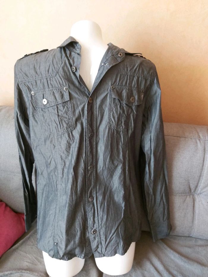 Chemise grise effet froissé leger. Cargo .bon etat, manque 1 bouton en haut. #tweety024HM