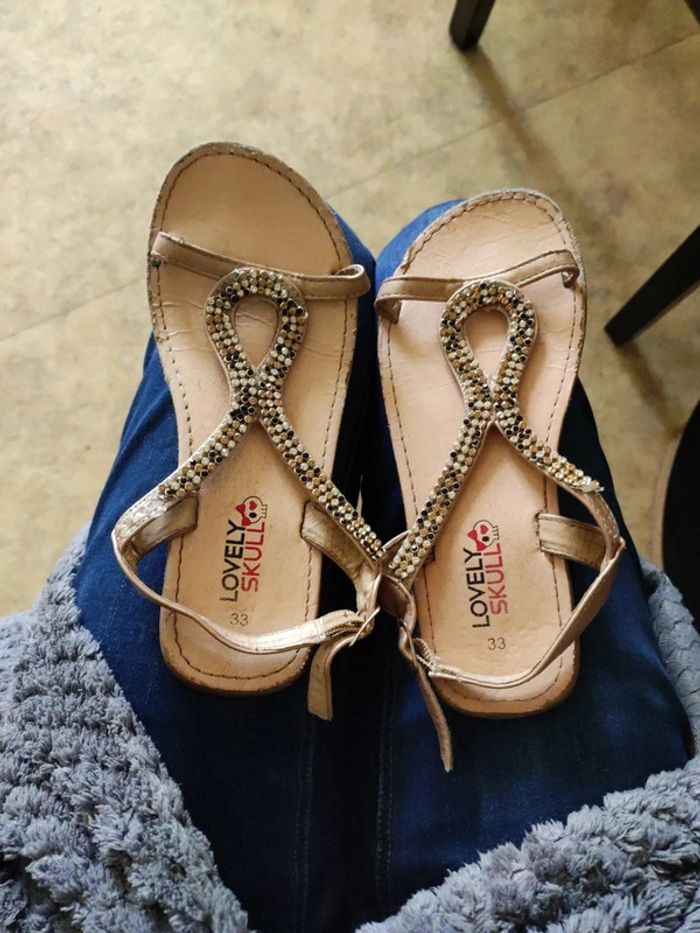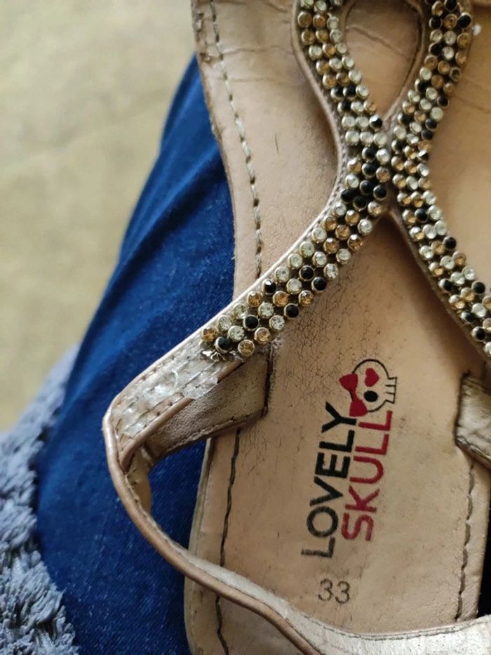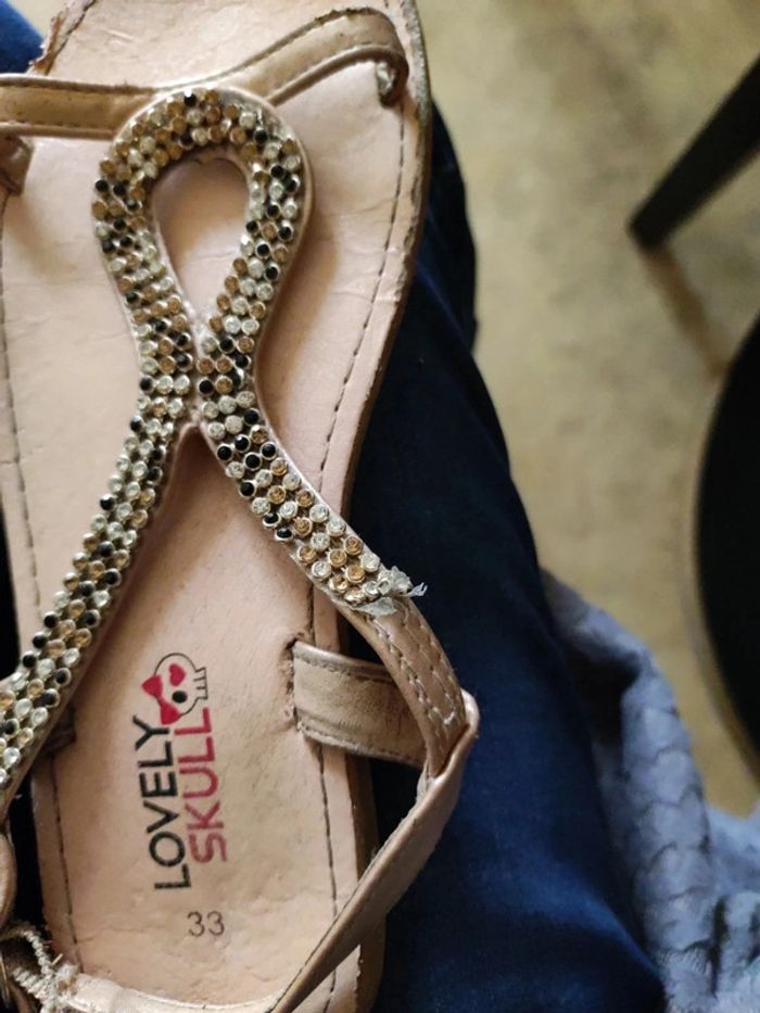 Nu pied .munie de perle et avec attache derriere.manque des perles sur certains endroit . Idéal pour trainer dehors . #tweety024chaussure33