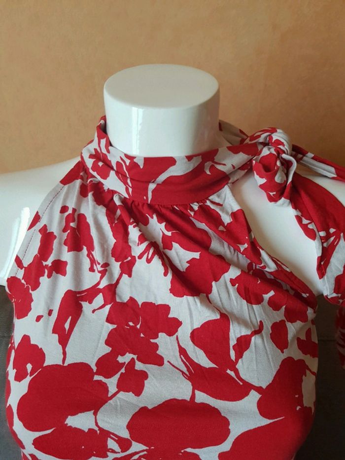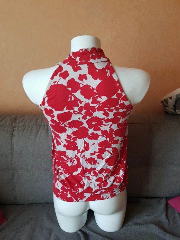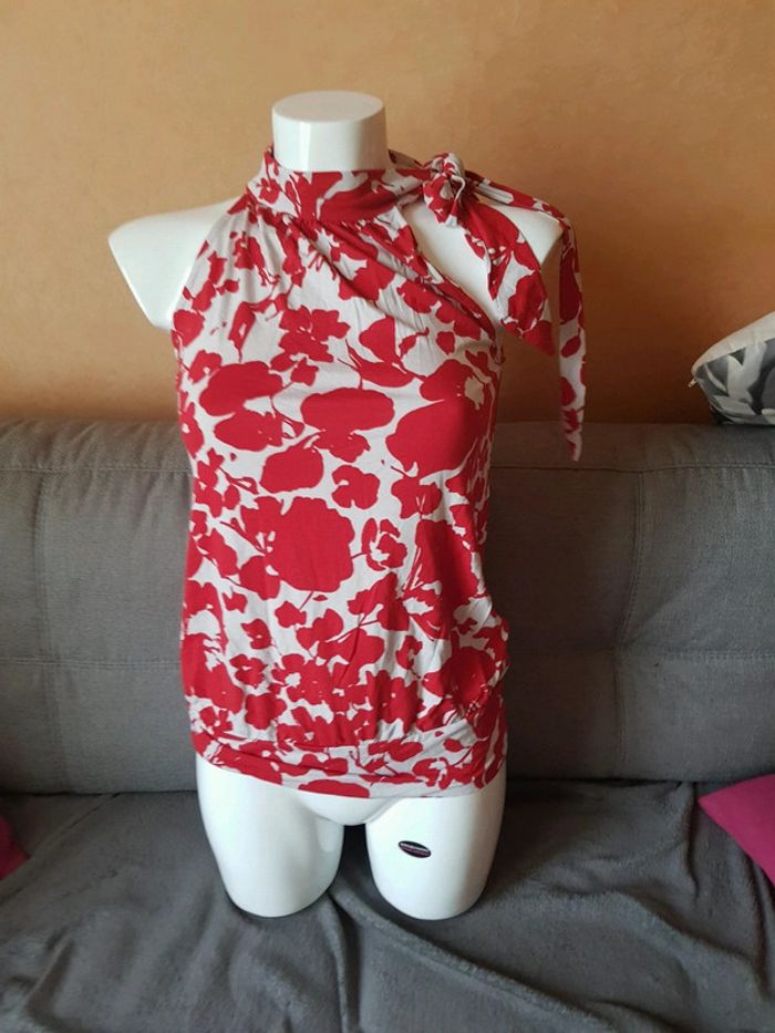 Debardeur qui sattache au coup. Jamais mis car trop grand pour moi. En parfait etat. Fleur rouge et blanche. #tweety024S