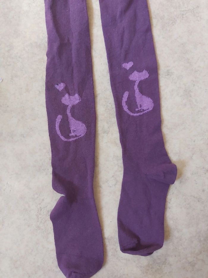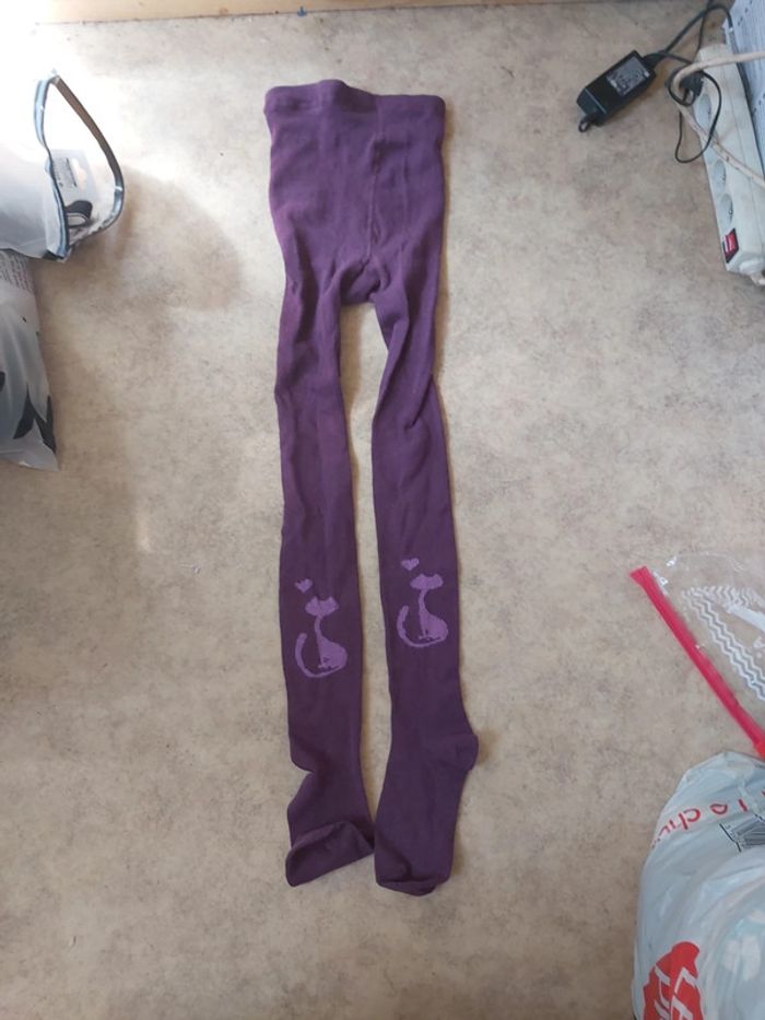 Collant epais violet avec chat et cœur dessus . Tes bon etat. #tweety024ACCESSOIRE #tweety02412 #tweety024XXS #tweety024XS #tweety024S