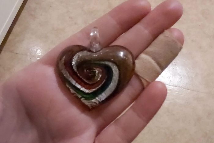 Pendentif en verre . Forme cœur multicolor avec paillette. #tweety024BIJOUX
