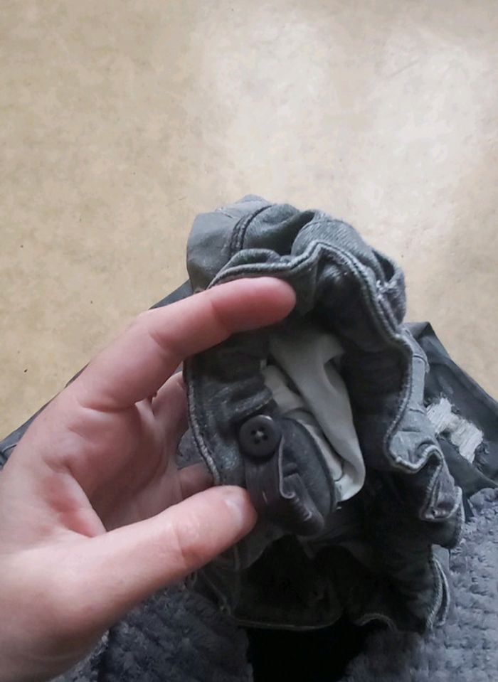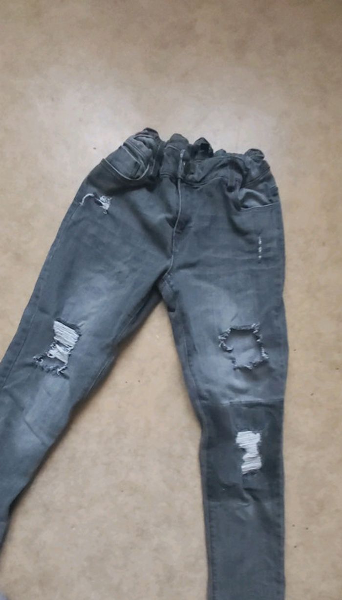 Jean troué couleur gris. Bouton à l'intérieur. Tres bon etat. #tweety02412