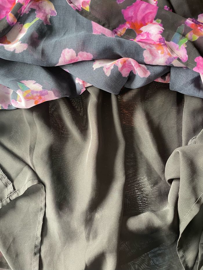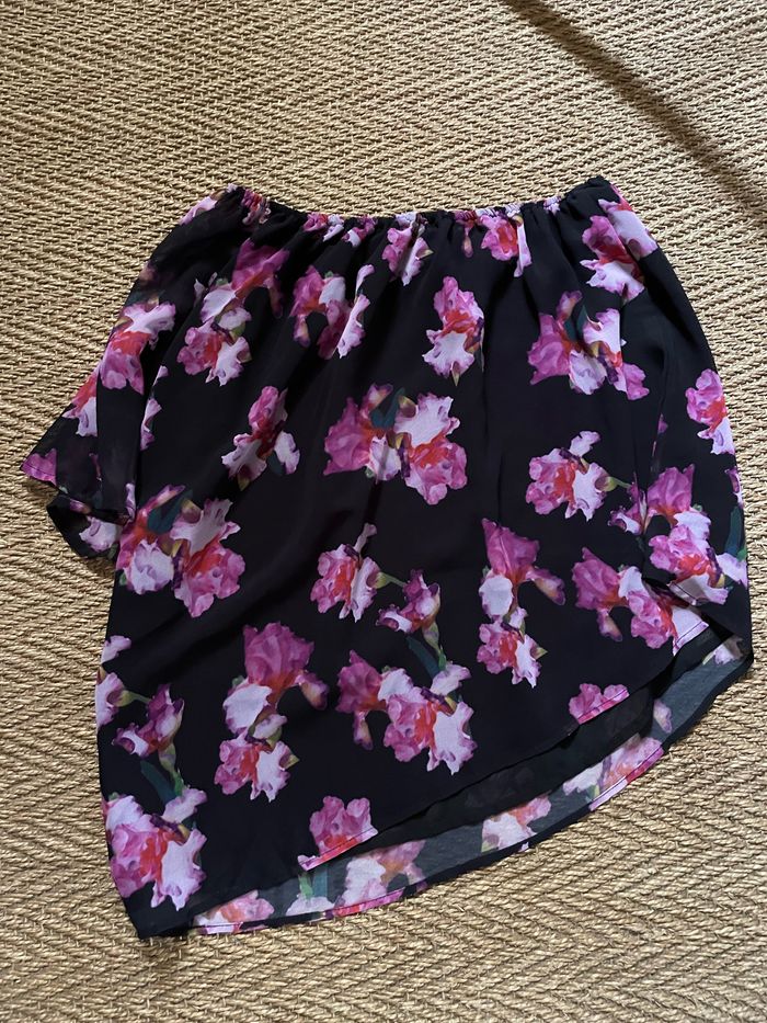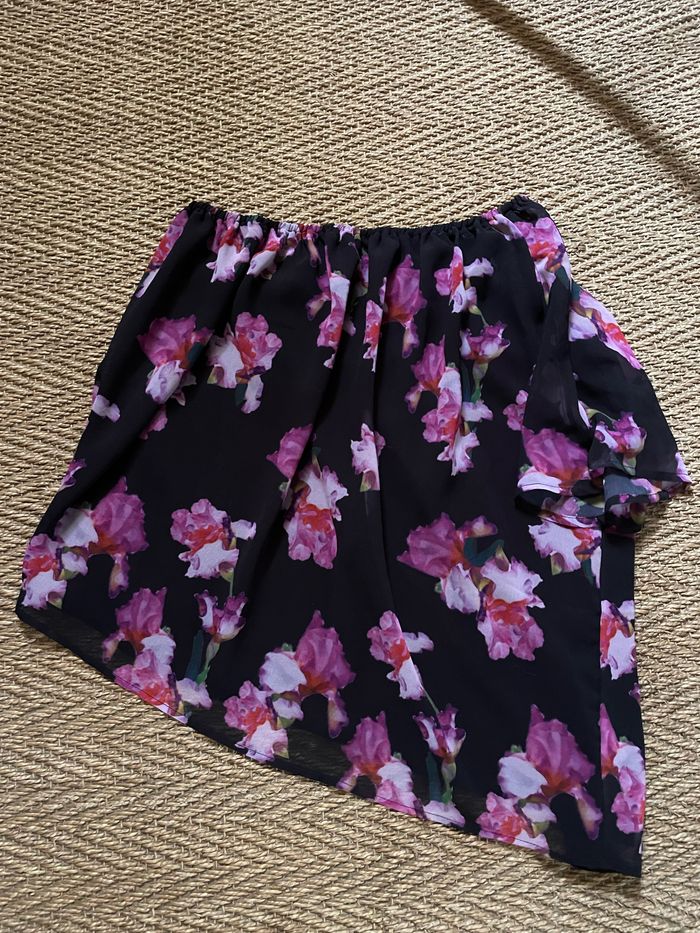 Asymétrique Peut-être portée 1 fois? Étiquette de composition coupée À l’état neuf Aucun défaut 🙂👍 Motif fleuri Petit volant sur le côté Taille élastiquée Doublée Longueur genoux