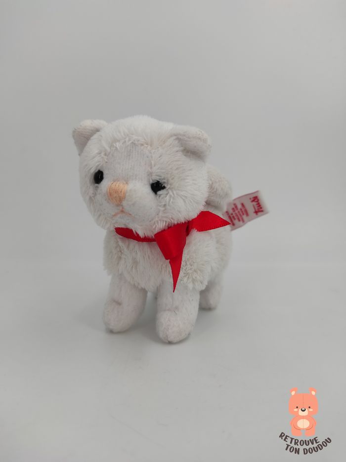 Mini Peluche Chat Blanc ruban Rouge Trudi - photo numéro 1
