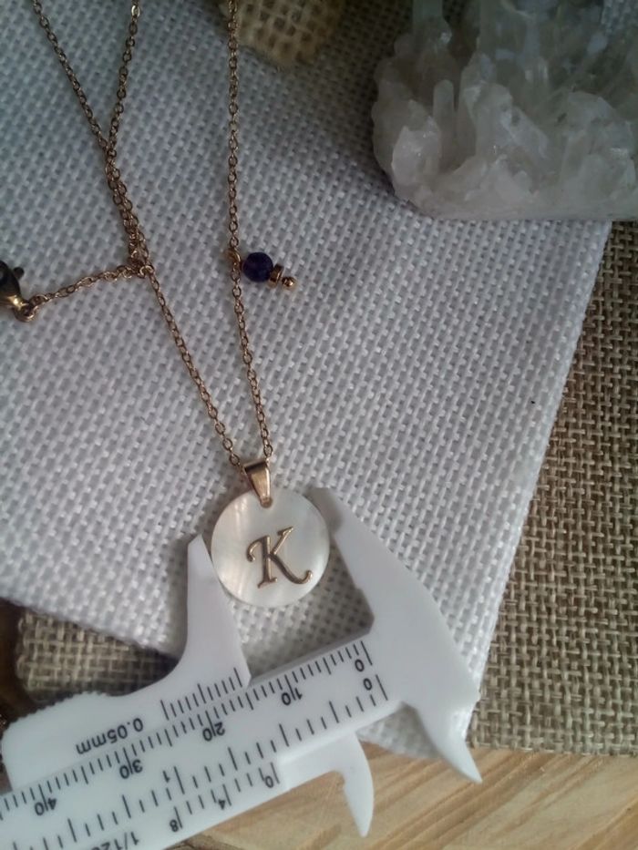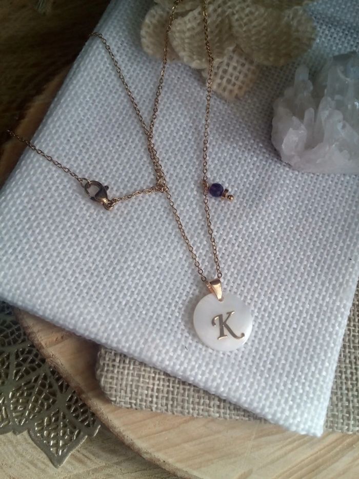 Collier pendentif lettre K et pierre améthyste 💜. - photo numéro 3
