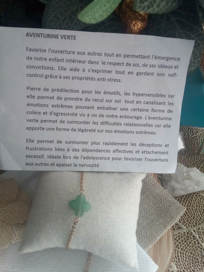 Réductions UNIQUEMENT sur les lots ☀️☀️ Prix FERME (réductions sur les lots) 🌷 Chaîne en acier inoxydable Réglable 🌿 unique 🌿 pierre 100% naturelle Si vous êtes intéressée par un lot : (il faut m'envoyer un petit message sur chaque article pour que je puisse vous faire le lot avec les réductions décrites ci-dessous ☺️) 🤍 Frais de port offert pour 2 articles (3 e déduit sur la somme totale) 🤍 A partir de 3 articles je fais 10% sur le lot (sans déduction des frais de port) Vous trouverez aussi pierres naturelles précieuses d'améthyste jade labradorite kyanite ambre citrine pierre de lune onix vintage tweed oversize libellule magie wicca bohème fée boho mortelle Adèle yin yang bouddhiste hindou spirituel grossesse pêche maternité blanche rouge noir œil cœur hindi cargo cadeau bola scarabé sorcellerie ésotérisme mode maman amulette bonheur ethnique santé guérison prière talisman prénom manga chemin indien oriental viking celte obsidienne trèfle zircon or 18k 24k lithothérapie dentelle ambre cadeau anniversaire mariage baptême fête coeur