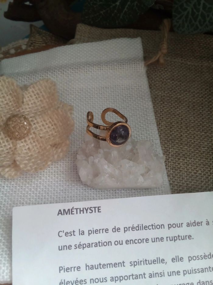 Bague acier inoxydable et pierre d'améthyste - photo numéro 4