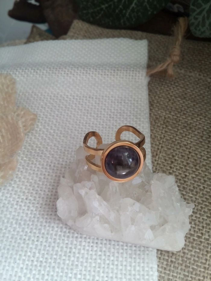 Bague acier inoxydable et pierre d'améthyste - photo numéro 1