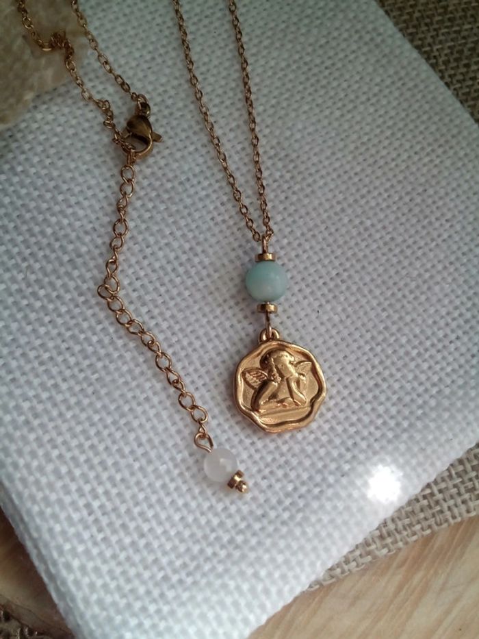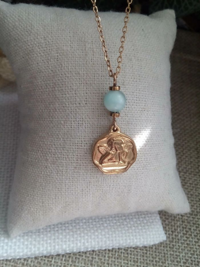 Collier ange et pierre naturelle de larimar - photo numéro 1