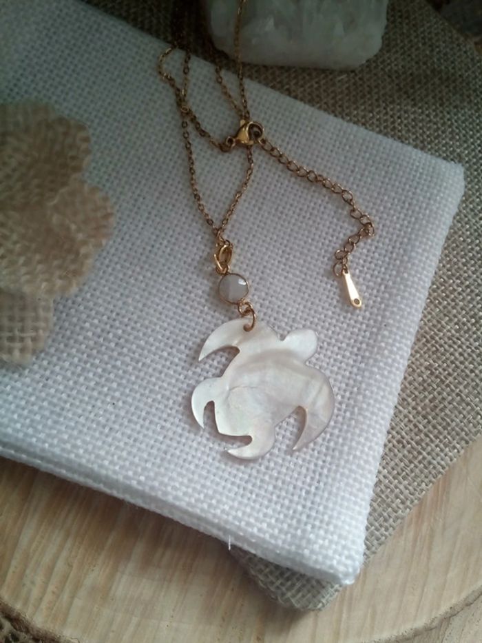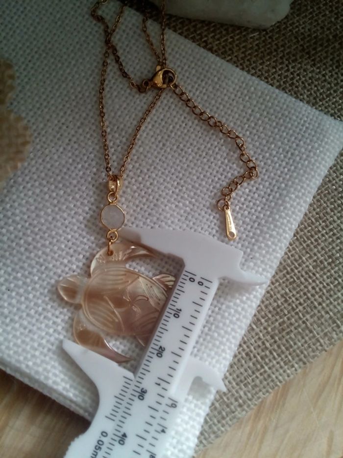 Collier pierre de lune et tortue en n'acre sculptée - photo numéro 1