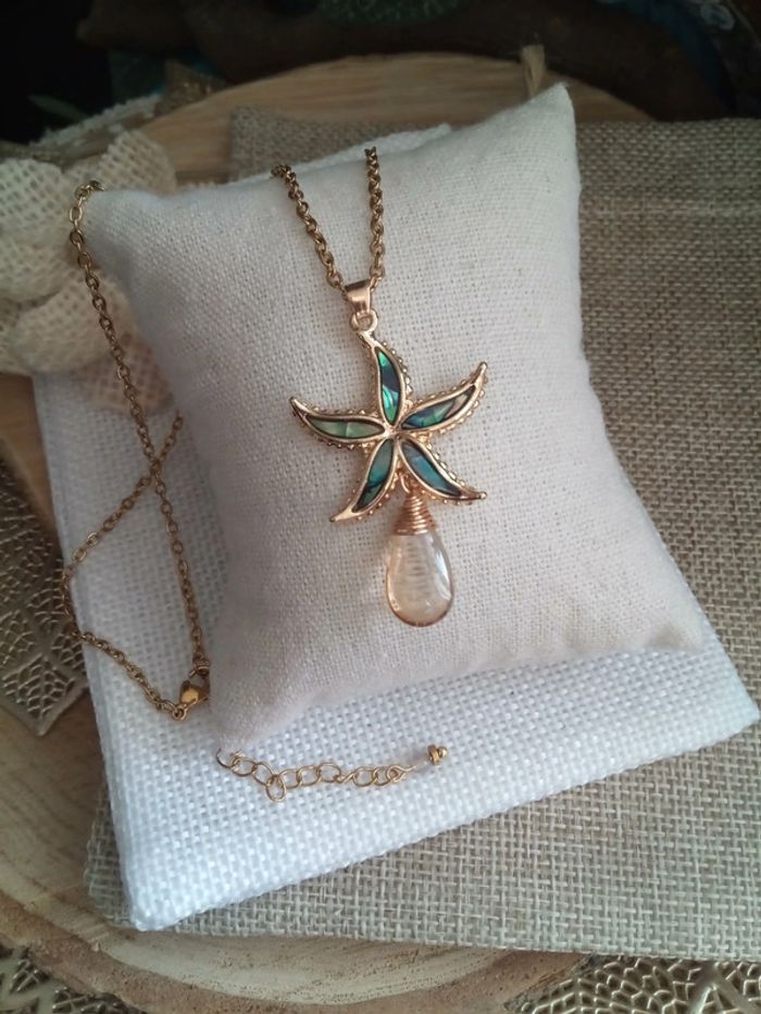 Collier étoile ormeaux et goutte champagne - photo numéro 1
