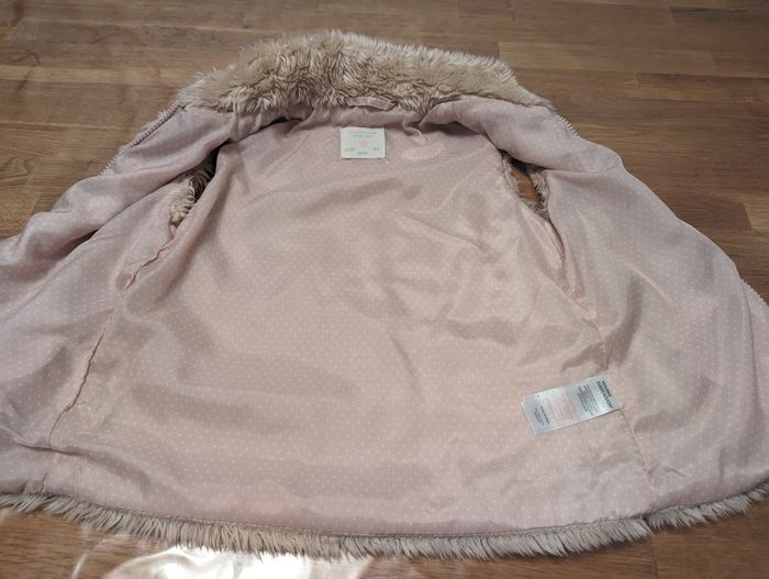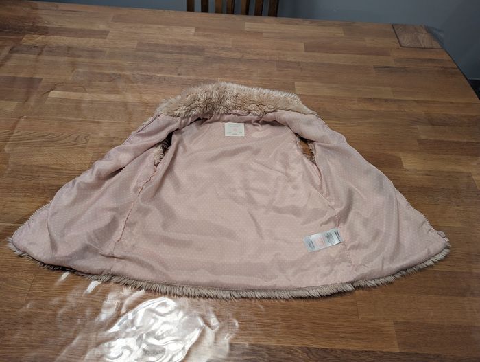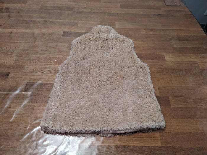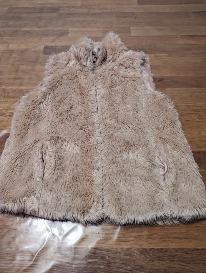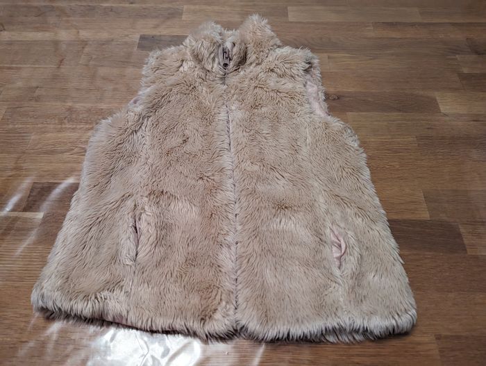 Gilet sans manche fausse fourrure fille 5-6 ans 116 cm Young Dimension Bon état, pour la couleur, je ne suis pas très sûre, je dirais rose très clair, fermeture éclair, deux poches.