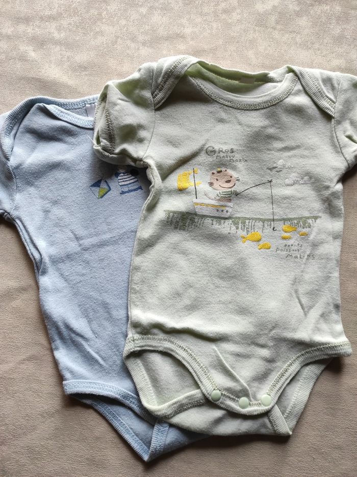 Lot deux bodies manches courtes bleu et vert 3 mois 100% coton.