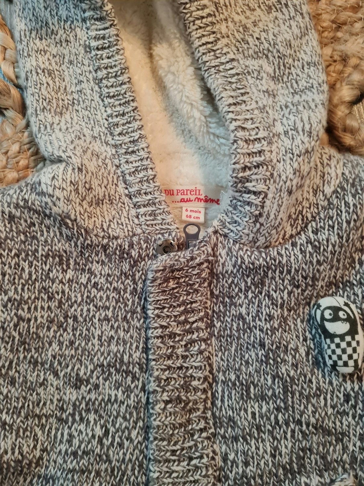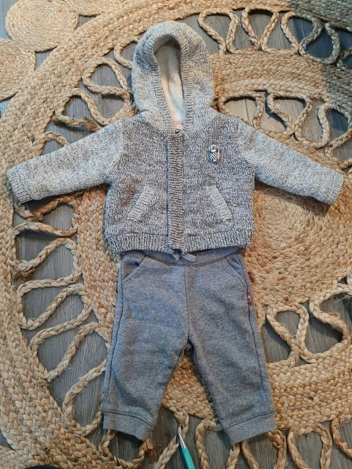 Ensemble pour bébé taille 6 mois Un pantalon jogging gris. Gilet à capuche en tricot chaud.